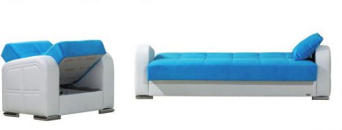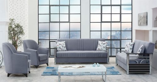 מערכת ישיבה לסלון 3+2 במחיר מיוחד, דגם צדף נפתח למיטה עם ארגזי מצעים